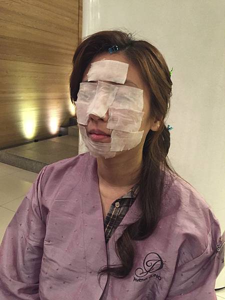 但被貼了滿臉搞得很像木乃伊,她說不能拍但還是被我跟Rainie螳螂捕蟬黃雀在後了一張~~